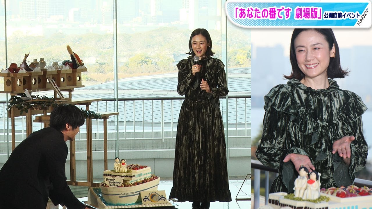 俳優の田中圭さんと女優の原田知世さんが11月30日、東京都内で行われた映画「あなたの番です 劇場版」(佐久間紀佳監督、12月10日公開)の公開直前イベントに登場した。