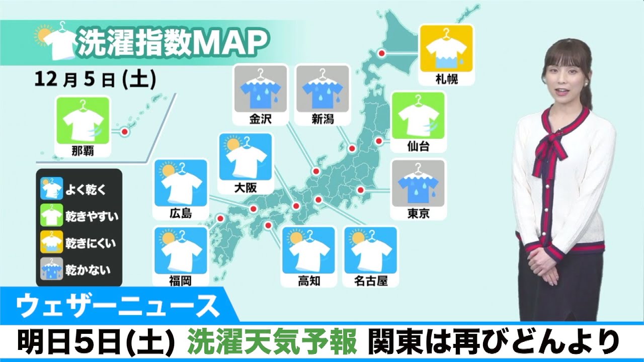 冬型の気圧配置が緩んで、北海道日本海側の雪は小康状態となり、日差しの届く所が多くなります。一方、北陸沖と関東沖には小さい低気圧が発生する見込みです。これらの影響で東北や北陸、関東では雲が多く、所々で雨が降り、北陸周辺では落雷やあられの可能性もあるため、明日の洗濯は部屋干しとなりそうです。 西日本は乾燥した晴天が続きます。 2020Casterウェザーニュースキャスターゲリラ豪雨ゲリラ雷雨ニュース予報北日本台風台風情報地震大雨天気天気予報情報東日本気象気象予報士減災西日本防災