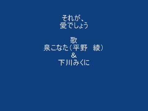 下川みくにが歌う「それが、愛でしょう」と泉こなた(平野 綾)が歌う「それが、愛でしょう」を一緒に流してみました。 それが、愛でしょうフルメタル・パニックらき☆すた下川みくに京都アニメーション平野綾泉こなた