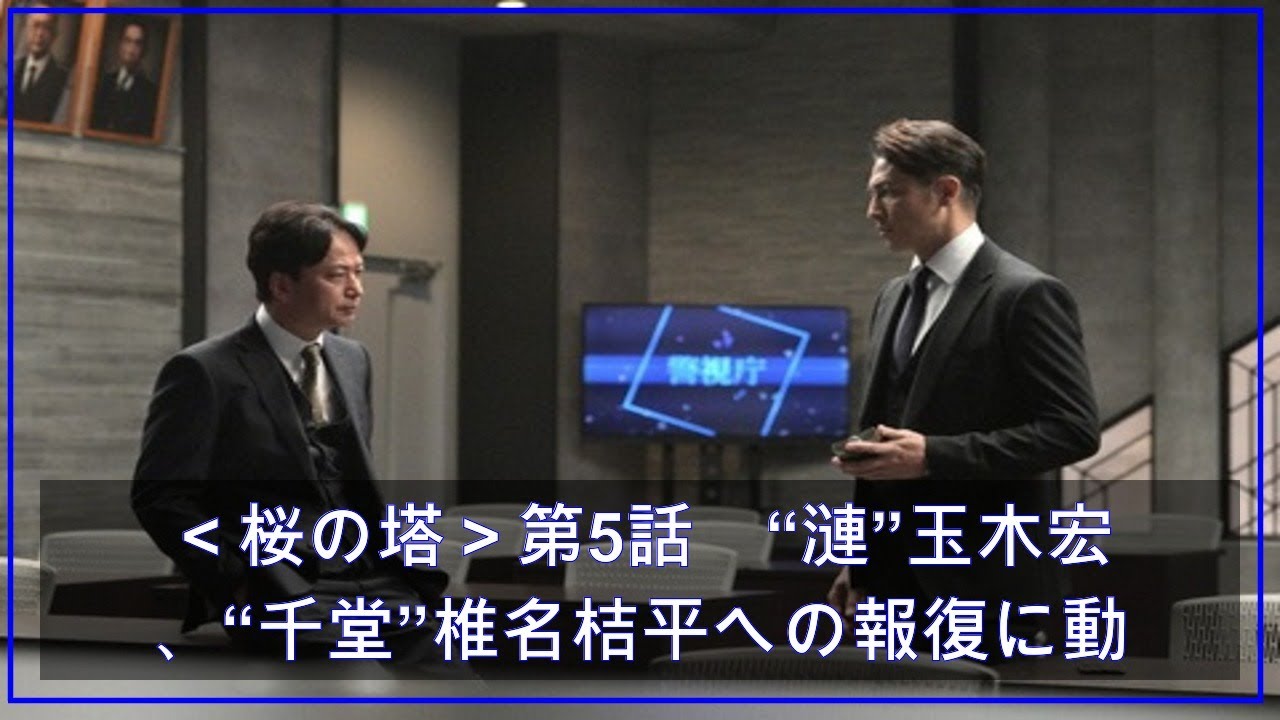 Share Facebook Twitter Pinterest LinkedIn ドラマ「桜の塔」第5話の一場面=テレビ朝日提供 俳優の玉木宏さん主演の連続ドラマ「桜の塔」(テレビ朝日系、木曜午後9時)第5話が5月13日に放送される。警視庁の監察官・上條漣(玉木さん)が、父を自殺に追いやった刑事部長・千堂大善(椎名桔平さん)への報復に動きだす。 【写真特集 桜の塔