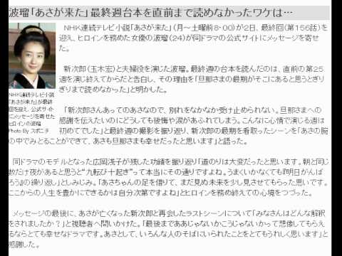 NHK連続テレビ小説「あさが来た」(月~土曜前8・00)が2日、最終回(第156話)を迎え、ヒロインを務めた女優の波瑠(24)が同ドラマの公式サイトにメッセージを寄せた。