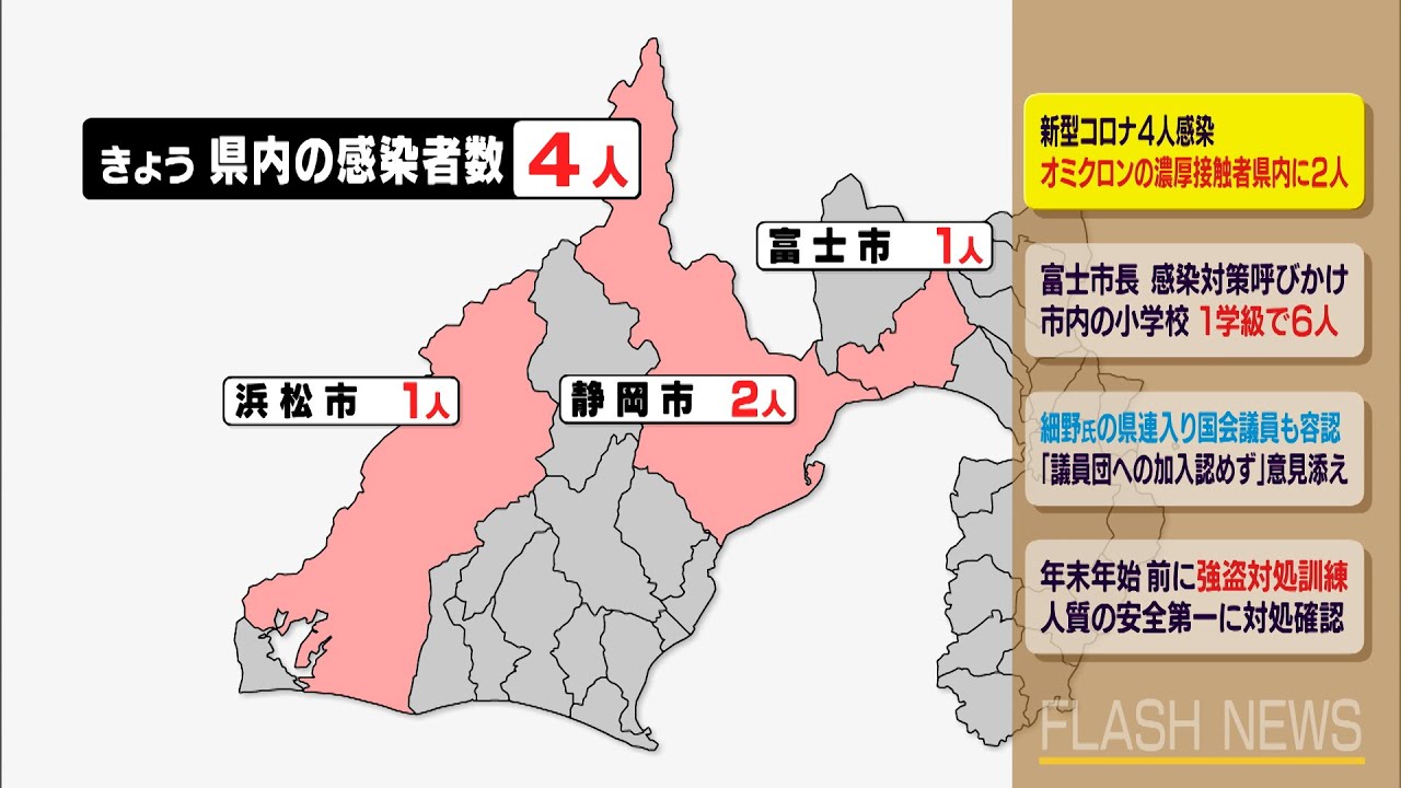Share Facebook Twitter Pinterest LinkedIn 新型コロナウイルスについて 県内では12月7日、新たに4人の感染が確認されました。新たな感染者を自治体別にみますと、静岡市で2人、浜松市で1人、富士市で1人です。県によりますと、国内3例目となるオミクロン株の感染者と同じ飛行機に乗っていた濃厚接触者の中に、県内在住者が2人いることが確認されたということです。 12月7日 SBSテレビ「ORANGE」放送 #おれんじ #オレンジ6 JNNLocalNEWSSBSSBSテレビTBS系列TVUCOLVB0iYK8ahQ0mFn-lF-8gコロナウイルス感染ニュースローカルローカルニュース静岡静岡放送静岡新聞静岡新聞ニュース静岡県