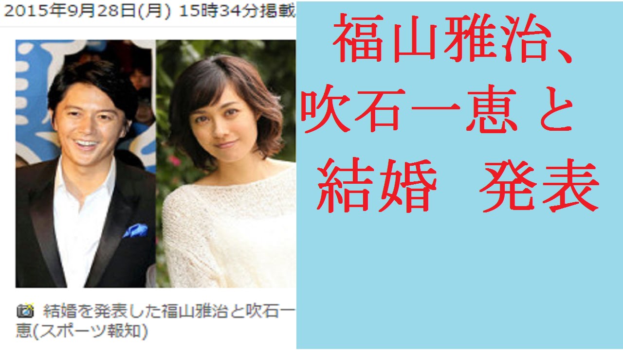 吹石も「本日、吹石一恵は福山雅治さんと結婚いたしました」と報告した。吹石は13歳で芸能界入りしており、芸能生活20年の節目の年となる。