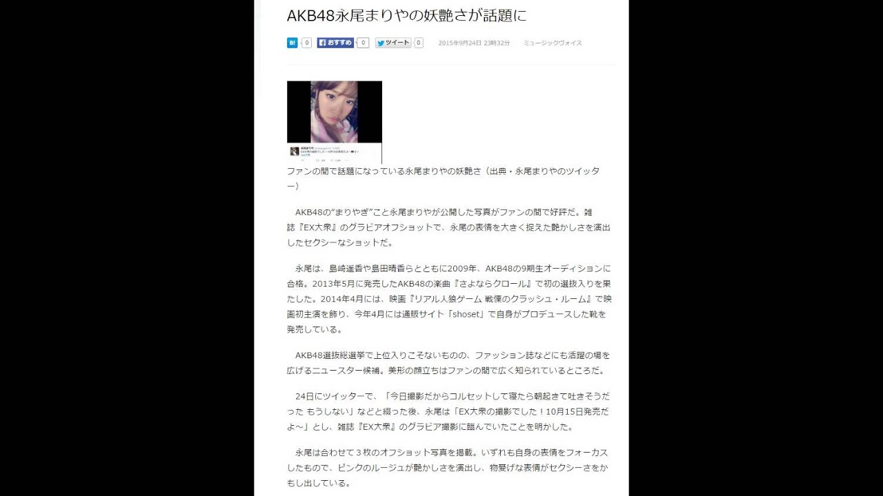 AKB48永尾まりやの妖艶さが話題に