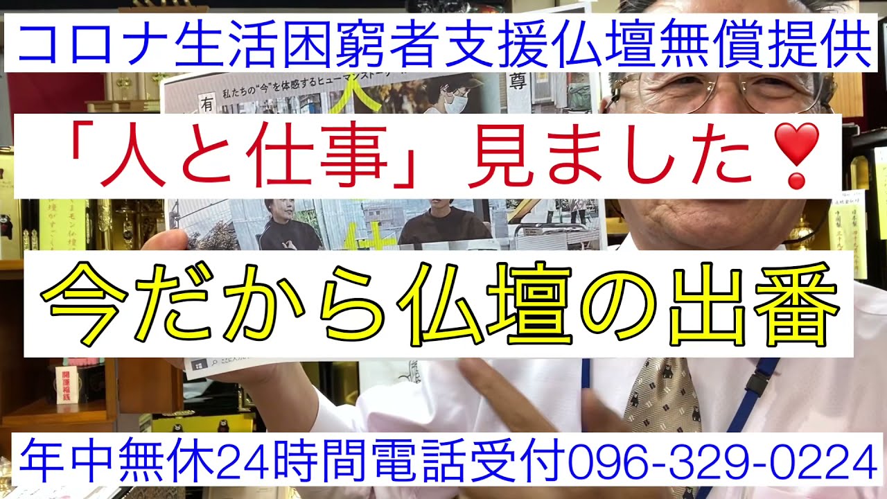 「コロナ生活困窮者支援&人吉豪雨被災者支援仏壇無償提供」24時間電話受付096-329-0224 ここをタップ http://wajima-100.info (有)輪島漆器仏壇店096-329-0224携帯📱090-7478-1086(24時間電話受付)〒860-0061熊本市西区上高橋1-11-2 コロナ生活困窮者支援仏壇無償提供人と仕事志尊淳有村架純