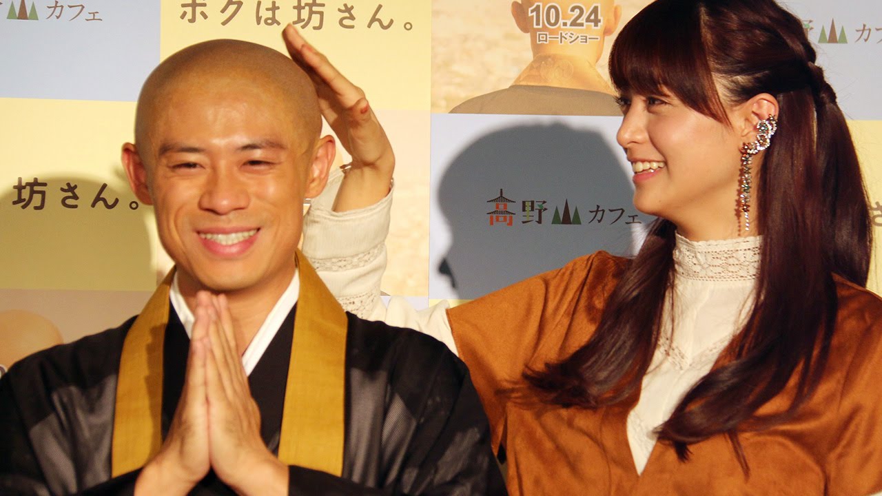 “Mizuki Yamamoto: “”I feel uncomfortable”” when touching Atsushi Ito’s “priest head”. Event of movie “”I’m a priest”” 2