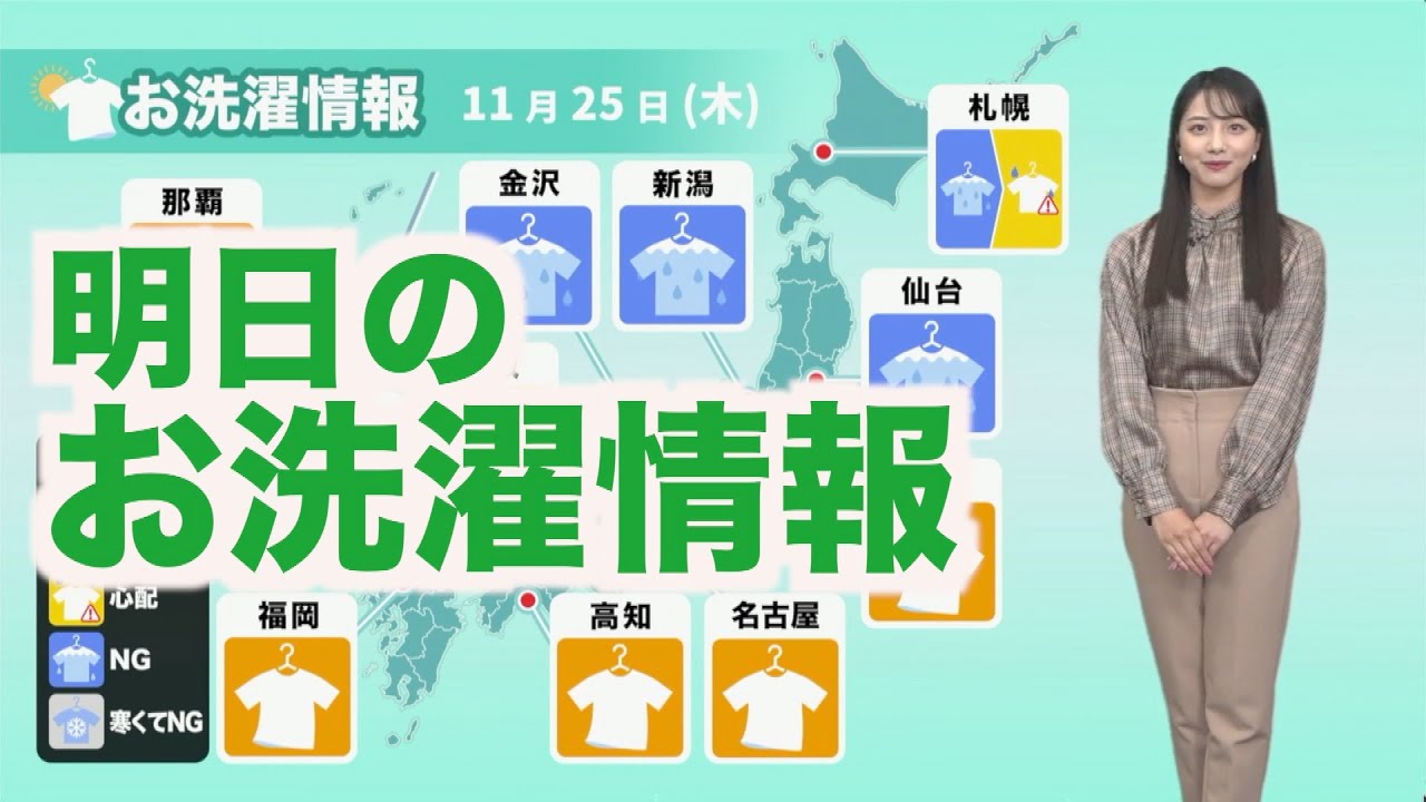沿岸部では風が強いため、洗濯物が飛ばされないようにご注意ください。