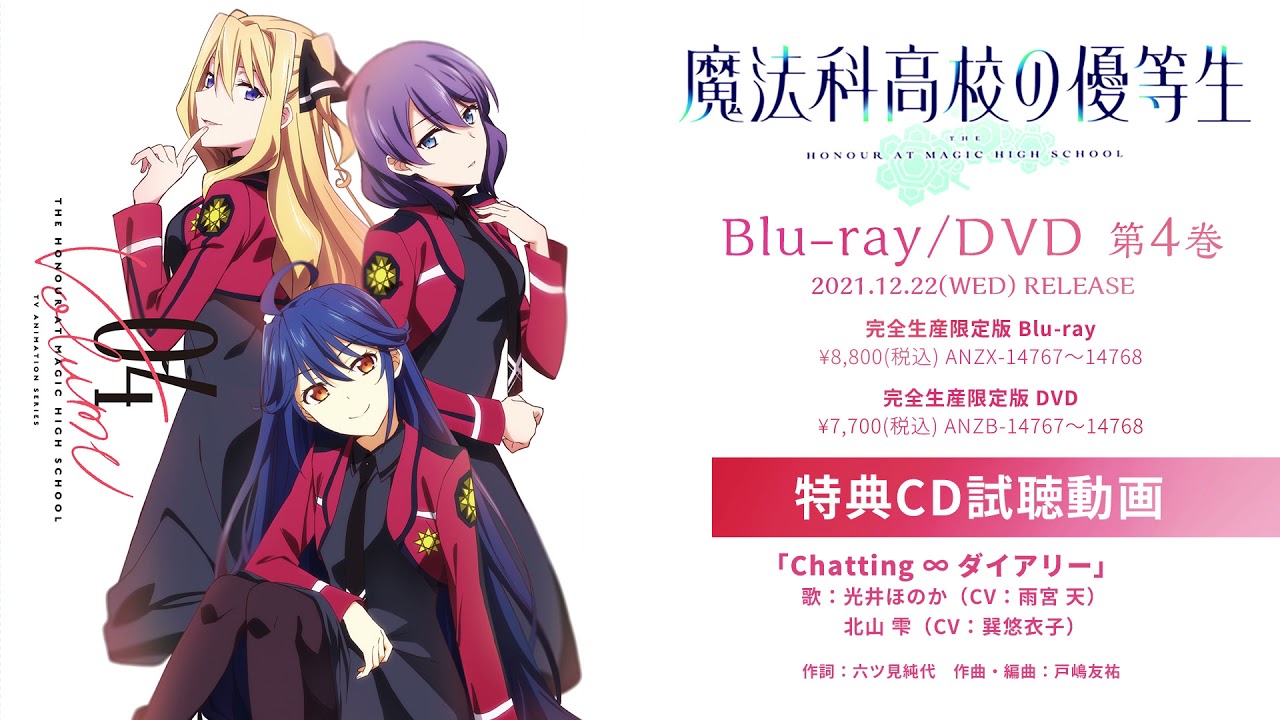 12月22日(水)発売のTVアニメ「魔法科高校の優等生」Blu-ray&DVD第4巻に収録されるキャラクターソングの試聴動画を解禁!