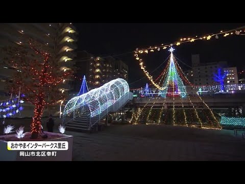 おかやまインターパークス里丘のイルミネーションは、1月上旬までで、午後5時から10時まで点灯されます。