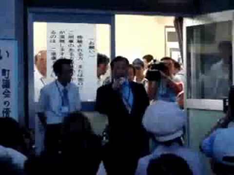 2008年9月19日、山口県上関町の定例議会で、上関原発予定地の埋め立て許可が強行採決された。議会終了後、原発反対派議員に促されて役場前に姿を現した柏原町長は、詰めかけていた原発反対の住民らに対してごく短い挨拶をした。 上関大橋上関町長中国電力公有水面埋立柏原重海