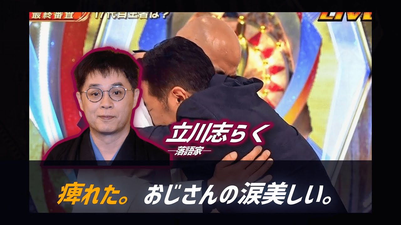 長谷川は号泣しながら「諦めないでやってきてよかった。僕はラストイヤーが56歳だったので、その前で…。今年で決められてよかった」と喜びを爆発。審査員の松本人志は「本当に僅差でした。最後の最後は、一番バカに入れようと思って、錦鯉に入れました」と評した。