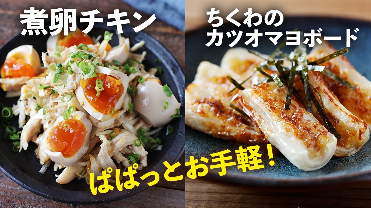 「ちくわのカツオマヨボード」と「煮卵チキン」は、どちらもささっと作れる簡単レシピになっています^^