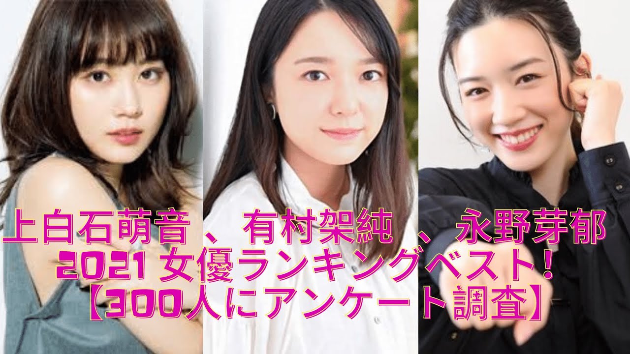 Share Facebook Twitter Pinterest LinkedIn #最新記事 #佐藤健 #上白石萌音 2021年12月6日〜12月16日まで「2021年最も活躍したと思う俳優・女優」調査をWebで行いました。 2021年もたくさんの映画やドラマが公開され、話題になりました。 そこでTVマガでは「2021年最も活躍したと思う俳優・女優は誰?」というアンケートを実施。 2021 女優ランキングベスト!【300人にアンケート調査】たけもね上白石萌音佐藤健最新記事有村架純永野芽郁清原果耶