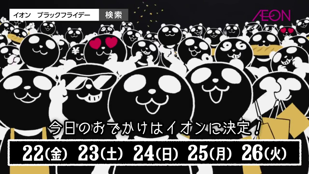イオンCM イオン ブラックフライデー 開催中篇 イオン、イオンリテール、イオンブラックフライデー、ブラックフライデー、イオンブラックフライデーセール、ブラックフライデーセール、イオンモール、AEON、コマーシャル、CM、ブラックパンダイオンブラックフライデー