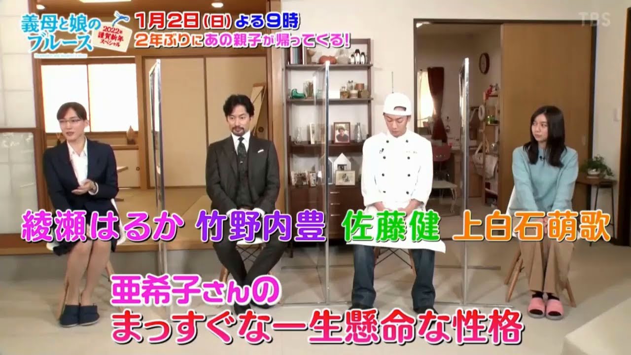 Share Facebook Twitter Pinterest LinkedIn #義母と娘のブルース #綾瀬はるか #竹野内豊 #佐藤健 #上白石萌歌 #王様のブランチ 『義母と娘のブルース』2022年 謹賀新年スペシャル「綾瀬はるか & 竹野内豊 & 佐藤健 & 上白石萌歌」亜希子さんの まっすぐな一生懸命な性格『王様のブランチ』 上白石萌歌佐藤健王様のブランチ竹野内豊綾瀬はるか義母と娘のブルース