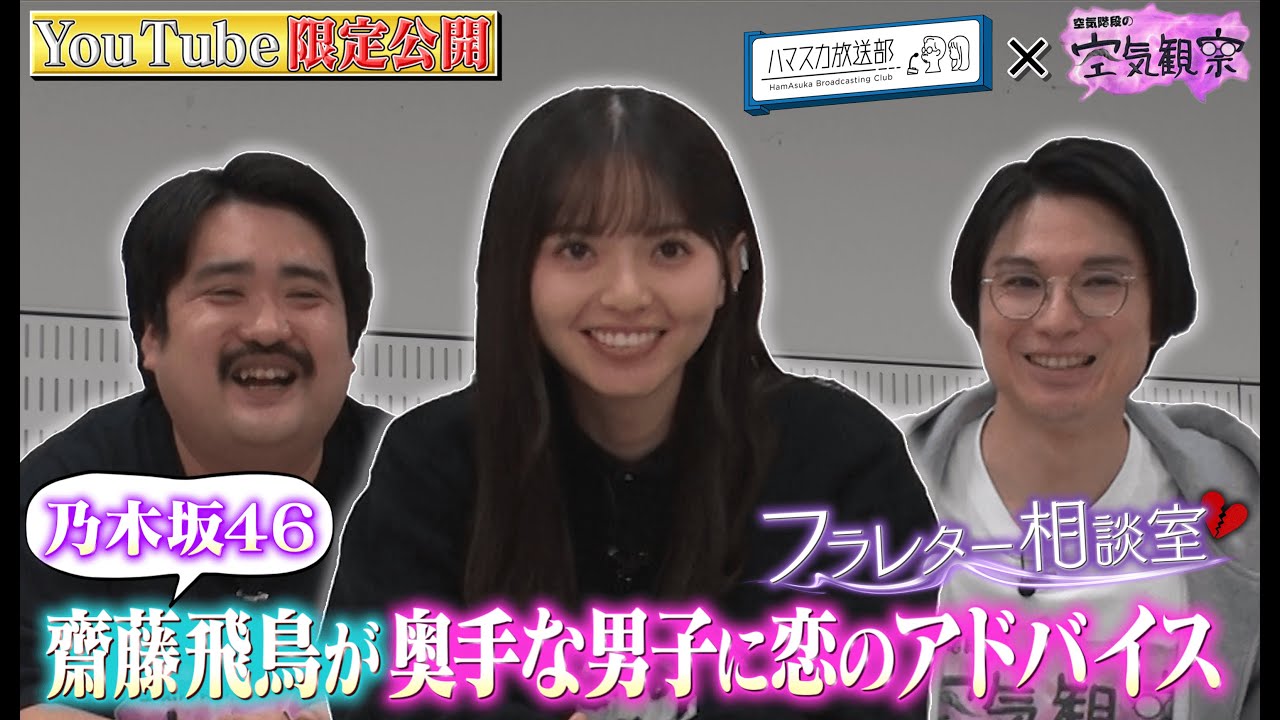 今回はハマスカ放送部とのコラボ企画!恋人からLINEでフラれた大学生の恋愛相談に答える「フラレタ―相談室」!盛り上がりすぎて本編に入りきらなかった5人目のフラレタ―さんをYouTube限定公開!乃木坂46齋藤飛鳥が奥手な男子にガチ回答!