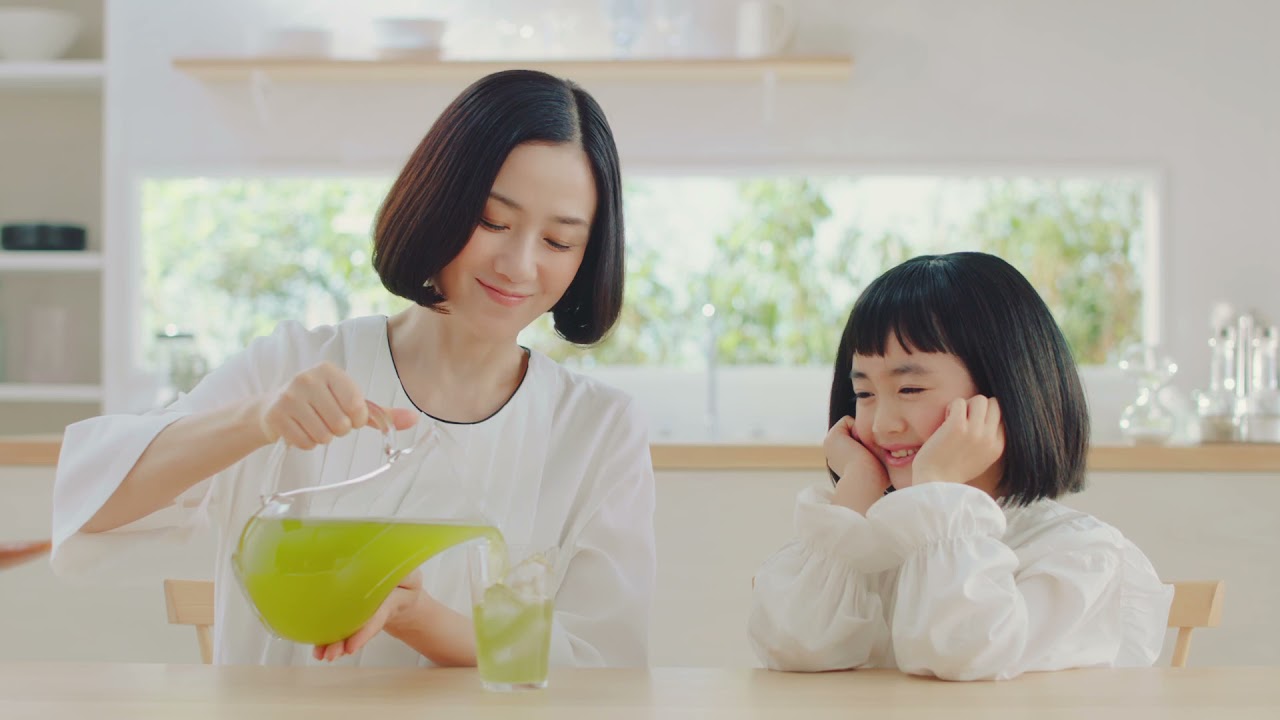 「さっとおいしく、ちょっといいこと。」というメッセージの後、《「ブレンディ®」ザリットル》のパッケージが並び、最後は原田さんと少女が緑茶を飲んで「ふぅ。」と一息。