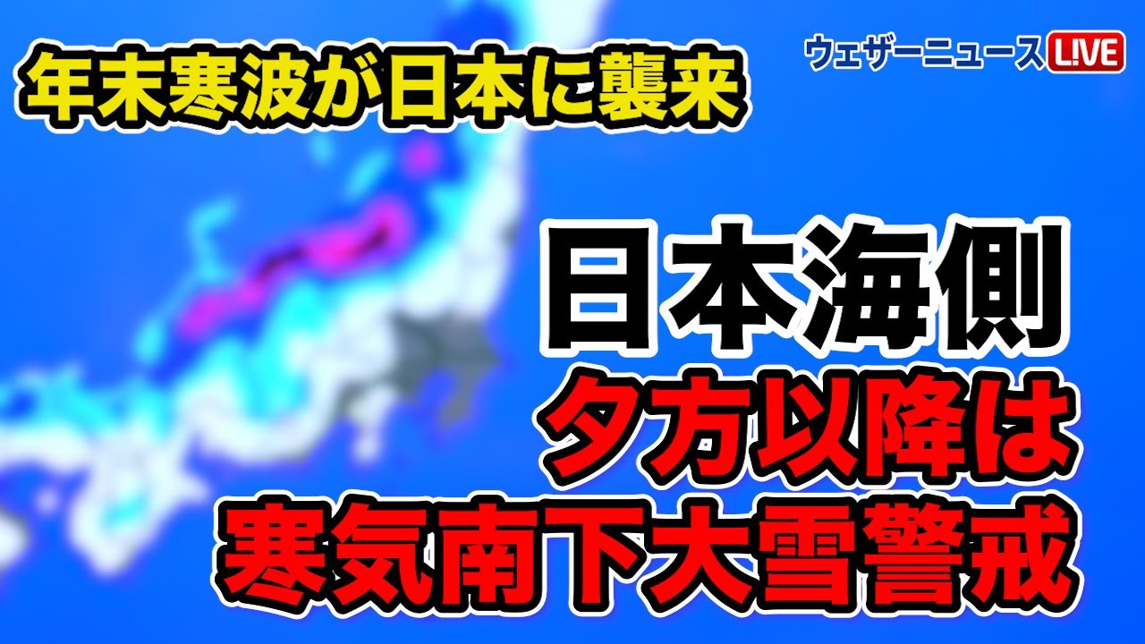 今夜からは強い寒気が南下するため、平地でも雨が雪に変わっています。あさって1月1日にかけて大雪に警戒してください。 #大雪 ▼雪に関する情報はこちら https://weathernews.jp/s/download/weathernewstouch.html?fm=youtube 2021年おすすめ天気アプリ ダウンロード数ナンバーワン!世界最大の気象情報会社ウェザーニューズが運営するNo.1お天気アプリ「ウェザーニュース」。予報精度は90%以上の一番当たる天気予報。 2021アナウンサーウェザーニュースニュース予報台風地震天気日本の天気予報気象気象予報士減災防災