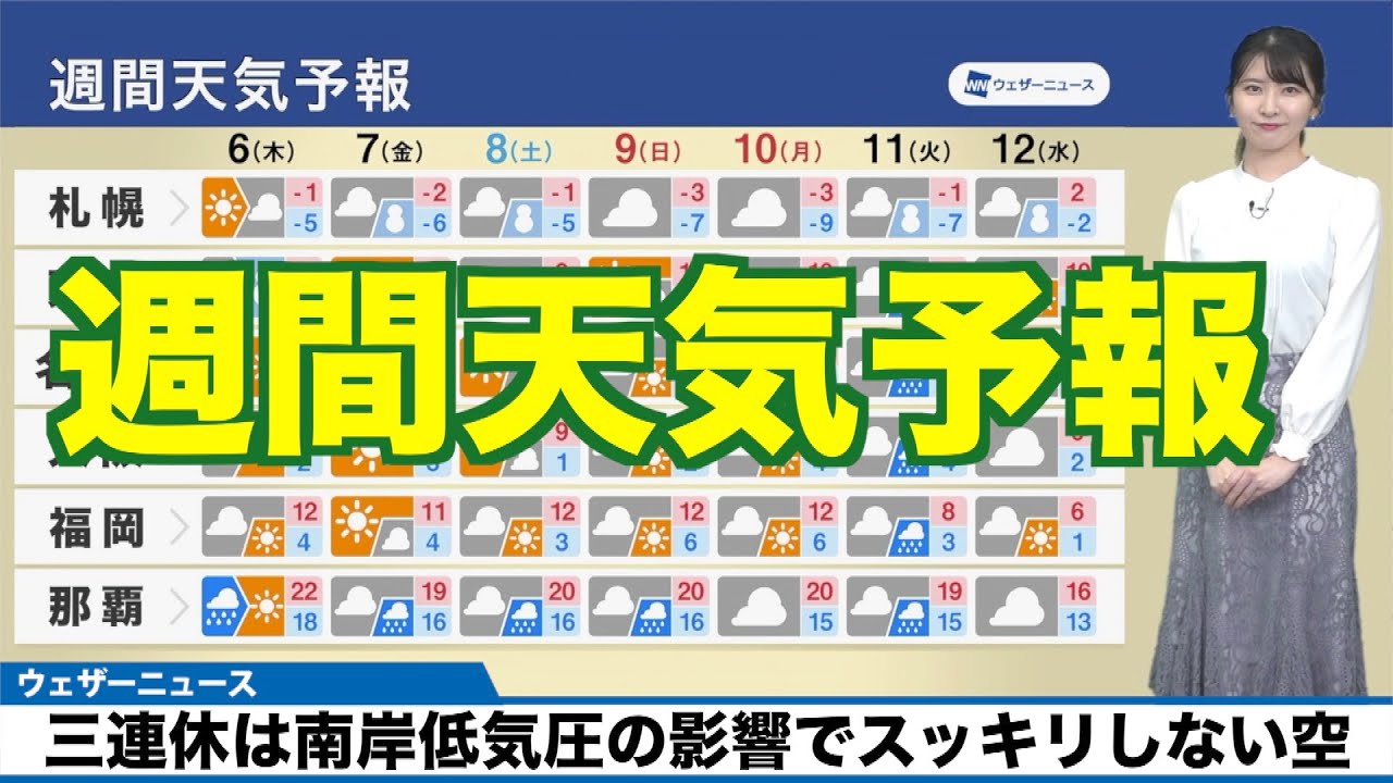 8日(土)から10日(月)成人の日にかけての三連休は、日差しの届くタイミングはあるものの、雲の広がるところが多くなる見込みです。