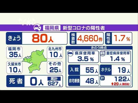 福岡県は6日、新型コロナウイルスの検査で新たに80人の陽性を発表しました。