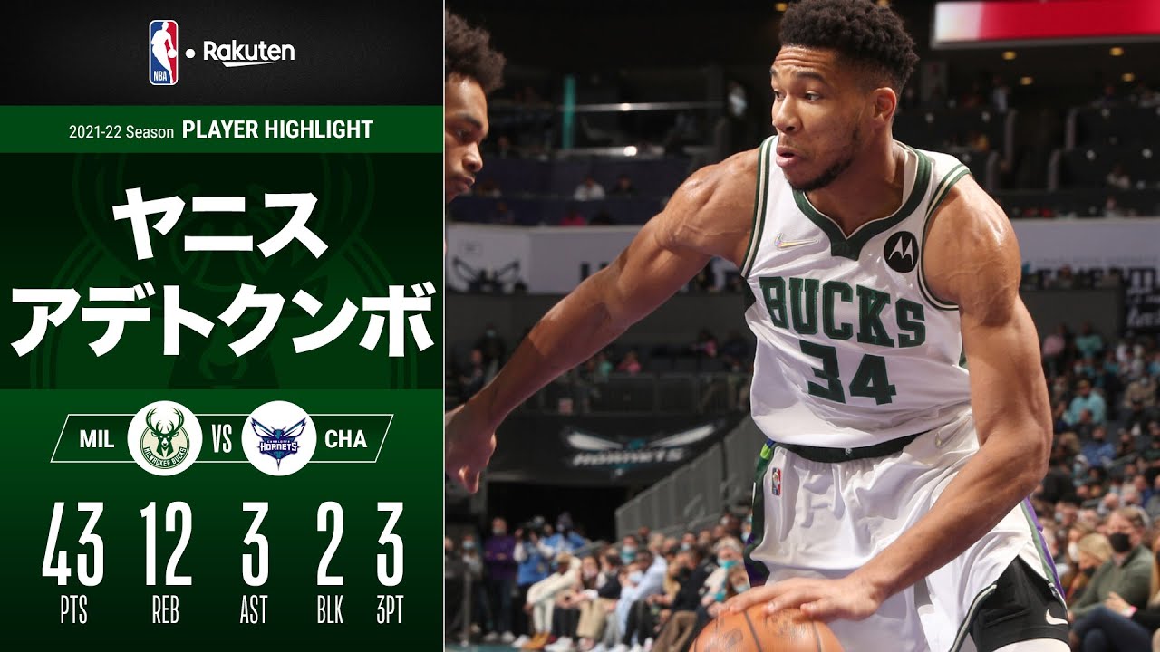 日本時間1月9日、バックスのヤニス・アデトクンボがホーネッツ戦で43点・12リバウンドと躍動! 40点超えは今季5度目。