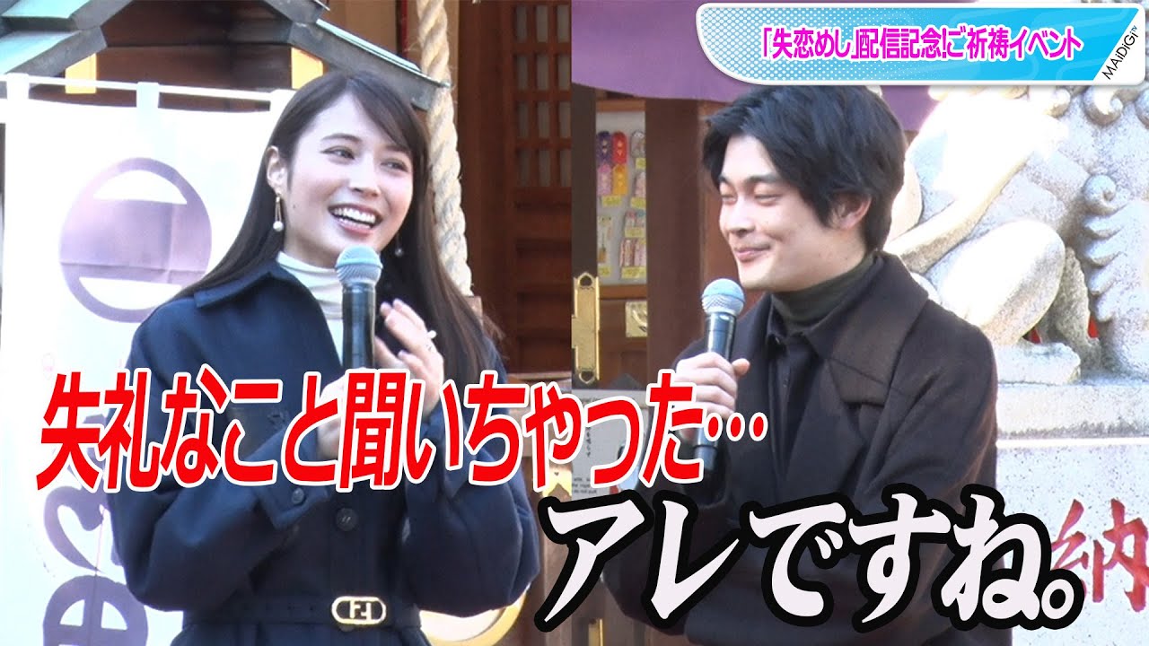女優の広瀬アリスさんが1月14日、東京都内で行われた主演連続ドラマ「失恋めし」の配信記念!ご祈祷イベントに、共演の井之脇海さん、臼田あさ美さん、安藤ニコさんとともに出席した。