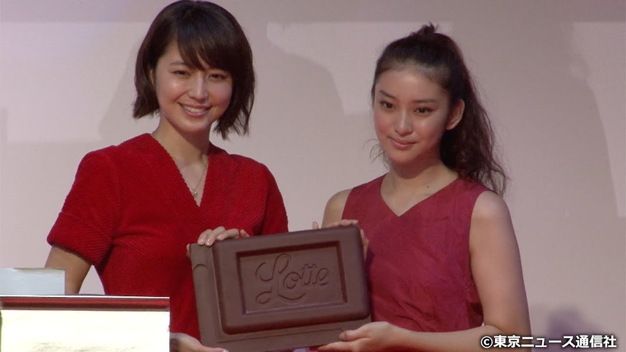 ロッテガーナミルクチョコレートの新CM発表会に、CMキャラクターを務める女優の長澤まさみと武井咲が登場した。