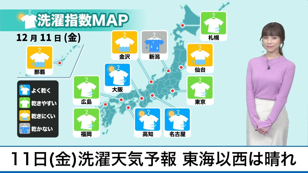 弱い冬型の気圧配置となり、日本海側では雲が広がりやすくなります。また関東は東部ほど雲が広がり雨の降る可能性があります。 東海以西では晴れるところが多くなります。洗濯物もよく乾きそうです。 2020Casterウェザーニュースキャスターゲリラ豪雨ゲリラ雷雨ニュース予報北日本台風台風情報地震大雨天気天気予報情報東日本気象気象予報士減災西日本防災