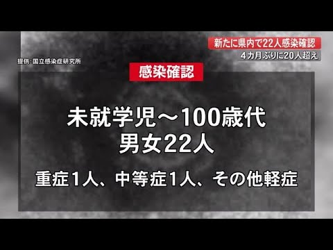 感染が確認されたのは未就学児から100歳代の22人で重症が1人、中等症が1人でその他は軽症です。
