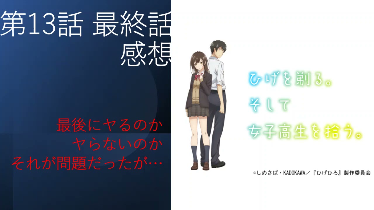 「ひげを剃る。そして女子高生を拾う。」の第13話(最終話)を観ました。 その感想です。▼Twitter Tweets by yass_komori▼ブログ(コモリヤスハルの日記帳) https://www.moelogue.com/ Higehiroひげひろひげを剃る。そして女子高生を拾う。