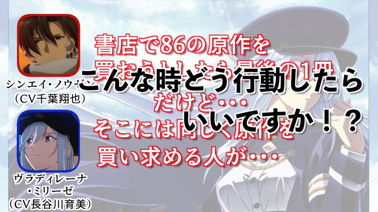 Share Facebook Twitter Pinterest LinkedIn アニメ86ーエイティシックスの声優千葉翔也さんと 長谷川育美さんが初コーナーでのやりとりです ■ブタより■ 近所の本屋さんで86の原作が以前より品薄になってたのを発見して ちょっと嬉しいブタでした ちなみにブタ人生でラノベ初購読は86です 【86ーエイティシックス】アニラジ第1回放送分より ・シンエイ・ノウゼン役「千葉翔也」さん ・ヴラディレーナ・ミリーゼ役「長谷川育美」さん #86は原作読む派読まない派かコメ待ってます 8686―エイティシックス―アニメエイティシックスラジオ