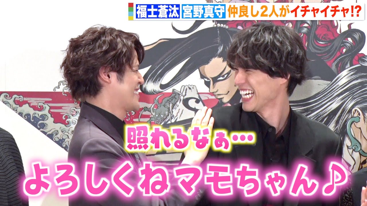 俳優の福士蒼汰、声優で俳優の宮野真守が25日、オンラインで行われた劇団☆新感線いのうえ歌舞伎『神州無頼街』製作発表に出席した。一昨年コロナ禍により公演が延期された今作でバディを演じる2人。冒頭から「一番はまもちゃんと共演できてうれしい。よろしくね、まもちゃん」とニコニコする福士に「照れるな。急な矢印…」と宮野が戸惑う場面も。司会から髪型や背丈が似ていることを指摘されると福士は「血も近くなっている気がする」と言い、宮野も「兄弟なんじゃないか」と仲良しぶりを発揮した。