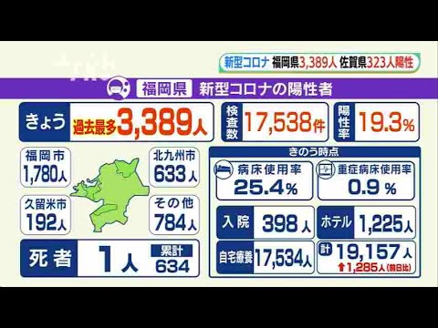 福岡県は25日、新型コロナウイルスの検査で新たに3389人の陽性を発表しました。 一日の新規陽性者数が、3000人を超えるのは初めてとなります。 また、福岡県の陽性者の累計は25日で10万人を超えました。 続きはこちらから https://rkb.jp/article/61230/ RKBRKBニュース新型ウイルス検査で陽性