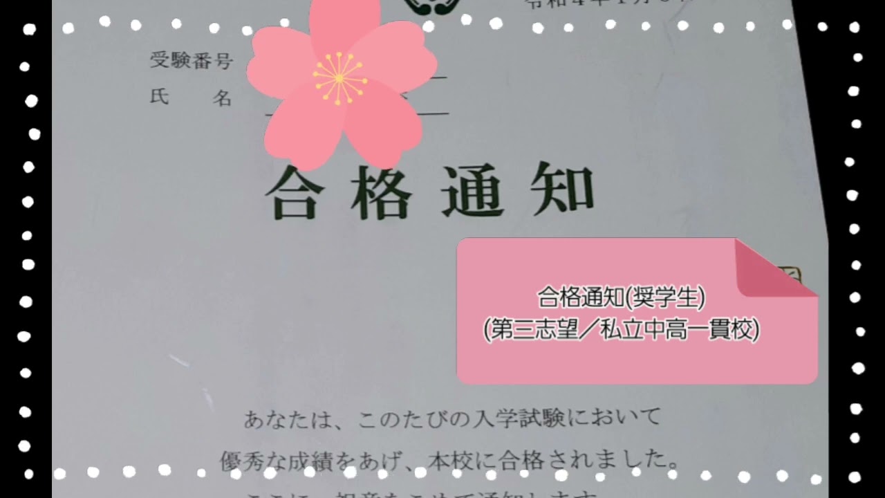 第三志望私立中高一貫校奨学生合格。(2022.1)
