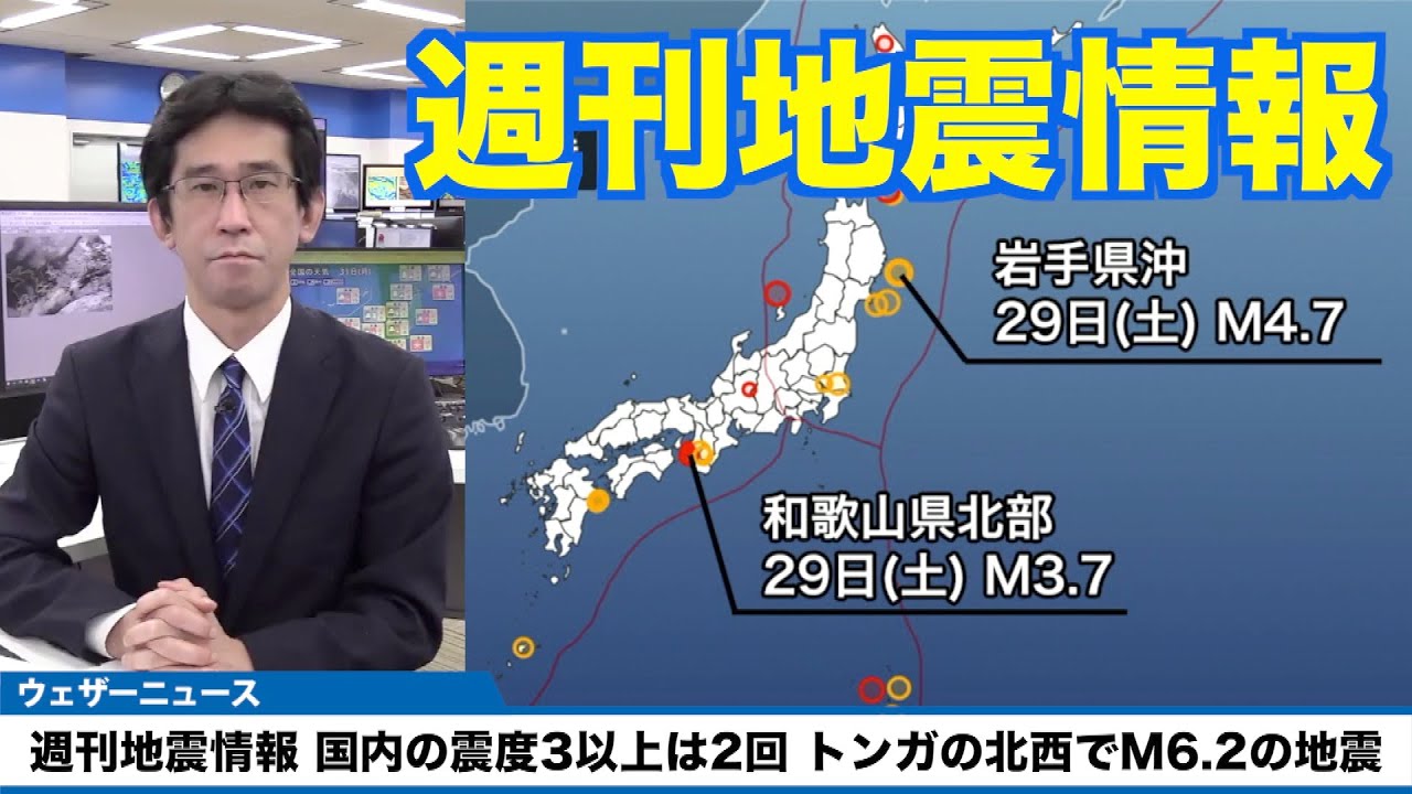 この1週間で国内で観測された地震回数は前週に比べると少ない水準です。