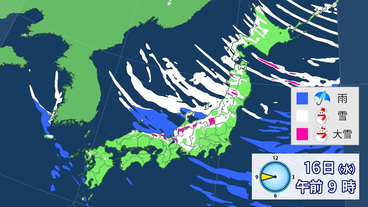 16日は引きつづき冬型の気圧配置となり、強い寒気が居座ります。日本海側では大雪がつづき、積雪や路面の凍結による交通の乱れに注意が必要です。太平洋側では晴れ間もありますが、名古屋など一部の地域では雪雲が流れ込むでしょう。最高気温は15日(火)よりもさらに低くなり、10℃未満となりそうです。17日(木)にかけて寒気が居座るため、大雪と真冬並みの寒さに警戒が必要です。今後の情報にご注意ください。(2020年12月15日夜アップロード) #天気予報 #ウェザーマップch ウェザーマップ天気予報気象予報士