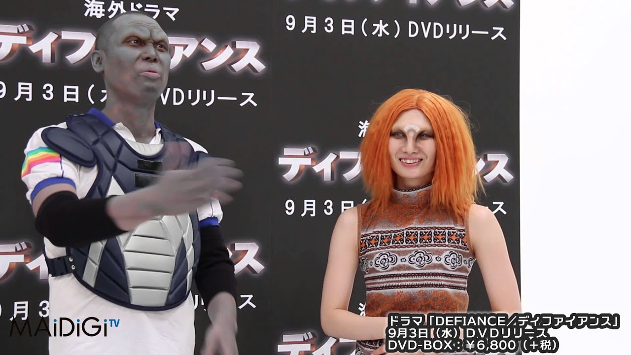 頭突きで瓦を割るCMなどで話題の女優・武田梨奈さんが8月20日、東京都内で行われた米ドラマ「DEFIANCE/ディファイアンス」のDVD発売記念PRイベントに登場。武田さんは、巨漢のエイリアンに扮(ふん)したお笑いコンビ「ニューロマンス」のおにぎりさんを相手に得意のハイキックを披露。報道陣から好みのタイプを聞かれて、おにぎりさんまで便乗する一幕もあった。