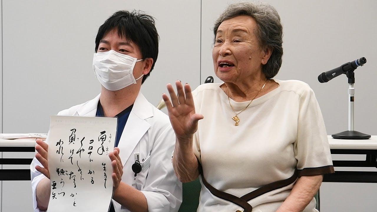 新型コロナウイルスに感染し、一時は悪化したが1カ月近い入院治療で回復した大津市の100歳の女性が10日、滋賀県庁で記者会見。「とにかく先生を信頼してすべてを任せました」と語り、自分に打ち勝つ気持ちが大切だと強調した。 ASAHINEWSニュース伊藤綾子朝日新聞速報