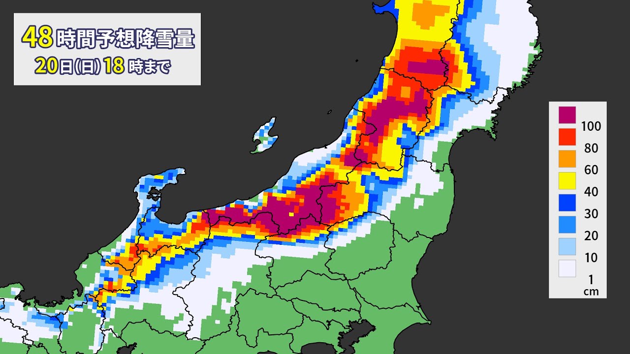 19日は再び冬型の気圧配置が強まります。日本海側では雪の降り方が激しくなるため、積雪や路面の凍結による交通の乱れに警戒が必要です。20日(日)にかけて大雪がつづくため、着雪による停電やなだれ、屋根からの落雪にも注意が必要です。安全な場所でお過ごしください。