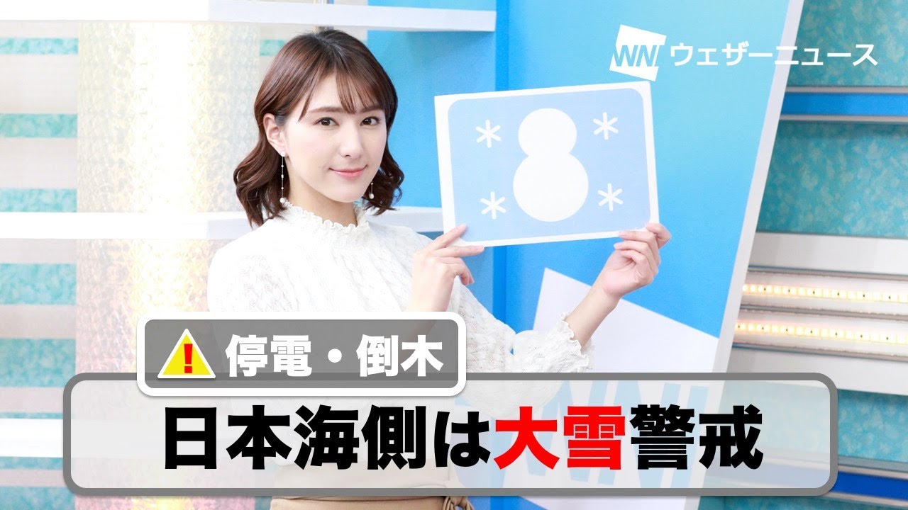 今日は、寒気が強まり、日本海側では広く雪が降りそうです。特に北日本は雪や風が強まり、大雪、吹雪にご注意ください。 太平洋側は冬晴れとなりますが、冷たい風が吹くー日。北日本や近畿中部、中国四国ではニワカ雨や雪のある変わりやすい天気です。沖縄はスッキリしない天気が続きます。 全国的に昨日よりも気温が下がります。今日も暖かな服装で防寒を万全にしましょう! それでは、気象状況に気を付けて、よい1日をお過ごしください^^ 解説:ウェザーニュースキャスター 白井ゆかり 2020Casterウェザーニュースキャスターゲリラ豪雨ゲリラ雷雨ニュース予報北日本台風台風情報地震大雨天気天気予報情報東日本気象気象予報士減災西日本防災