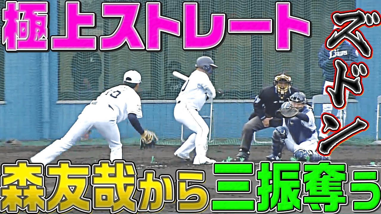 ドラ2ルーキーの佐藤隼輔がシート打撃で森友哉と対決!見事なストレートで三振を奪った。
