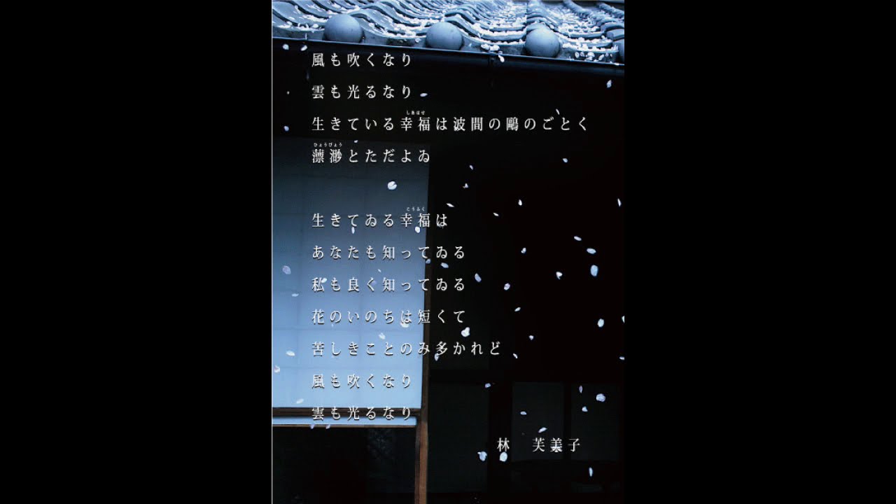芙美子は生涯3万枚を超える原稿を書いたと言われます。 その中から、今に伝えたい作品を朗読で配信しています。 今後、作品数を増やしていきますのでお楽しみください。新宿歴史博物館ボランティアによる朗読の会 「ふみのしおり」 新宿区立林芙美子記念館 https://www.regasu-shinjuku.or.jp/rekihaku/fumiko/12/ 小説放浪記新宿朗読林芙美子白痴 デジタルリマスター版