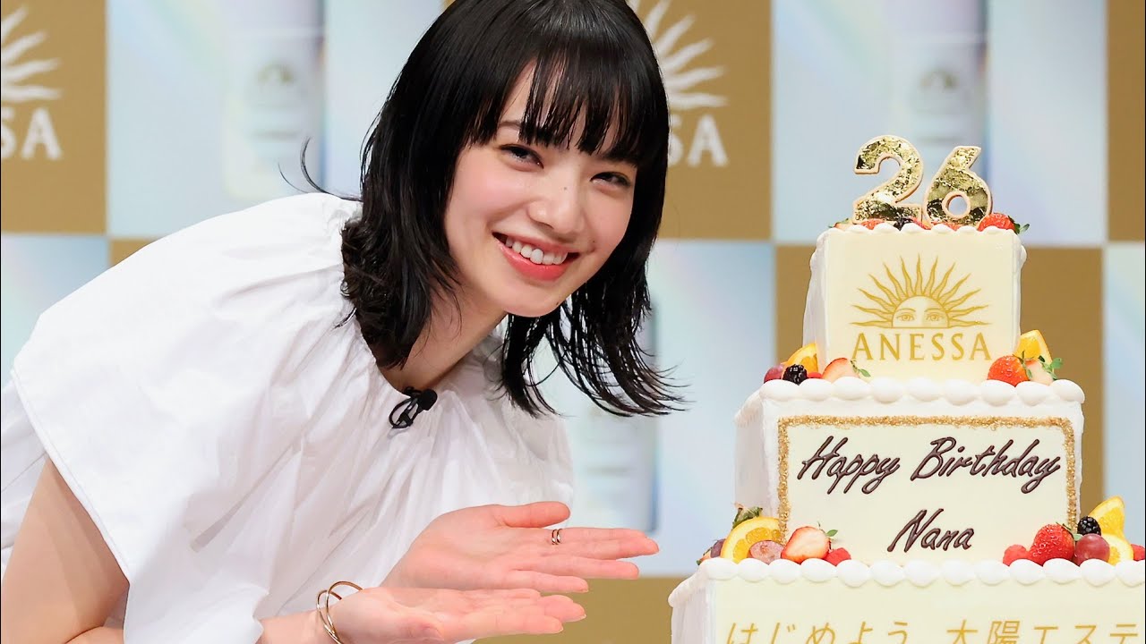 アネッサ新ミューズに小松菜奈が就任!誕生日ケーキを前に「26歳はアネッサで将来の美肌を目指したい」紫外線をカットしながら、美容効果のある光に変換する革新的新技術を前に驚き!「アネッサ新ミューズ就任・新 TVCM 発表会」を2022年2月15日に開催。