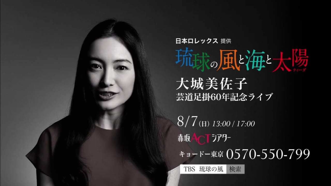 Share Facebook Twitter Pinterest LinkedIn 日本ロレックス提供 大城美佐子「琉球の風と海と太陽」 琉球民謡・最後の歌姫 大城美佐子 芸道足掛60年記念ライブ http://www.kyodotokyo.com/ryukyuminyo_tida 仲間由紀恵大城美佐子沖縄琉球琉球の風と海と太陽