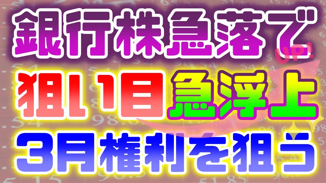 銀行株急落で、狙い目急浮上!3月権利を狙う。