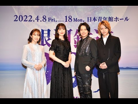 #中川晃教、花總まり、佐藤流司、梅田彩佳が26日に行われた舞台「銀河鉄道999THEMUSICAL」のオンライン制作発表会見に登場し、急逝した神田沙也加さんへの思いや意気込みを語った