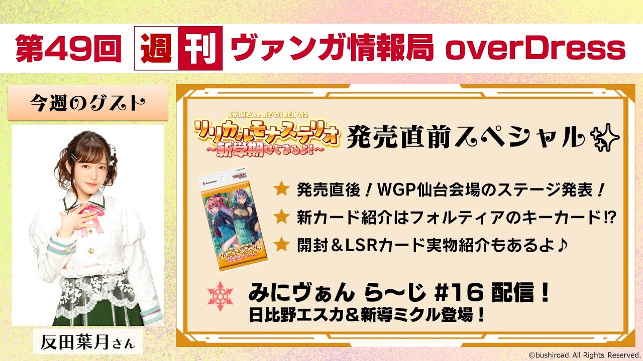 毎週火曜21時より、週刊ヴァンガ情報局 overDressをお送りします!
