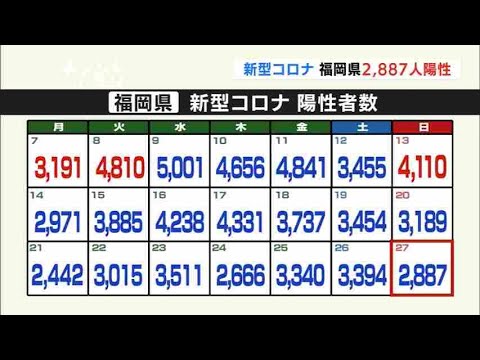 福岡県は27日、新型コロナウイルスの検査で新たに2887人の陽性を発表しました。