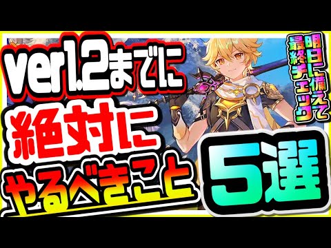 原神げんしんのver1.2アプデ前に絶対にやるべきこと5選を解説しました。明日までにみんなでワイワイ話して盛り上がっていこう!ドラゴンスパインかかってこい