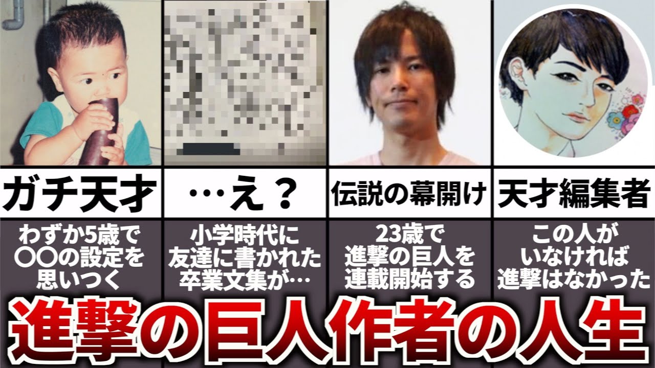 今回は、進撃の巨人の作者である諌山先生の人生・生い立ちを紹介していきました! 参考資料&引用 ©諫山創・講談社/「進撃の巨人」The Final Season製作委員会 ※動画内で使用している全ての画像は上記の作品からの引用させていただいております。 #進撃の巨人 #ファイナルシーズン #The Final Season Part2 #考察 The Final Seasonエレンファイナルシーズンライナーリヴァイ巨人考察解説進撃の巨人進撃の巨人 The Final Season Part 2